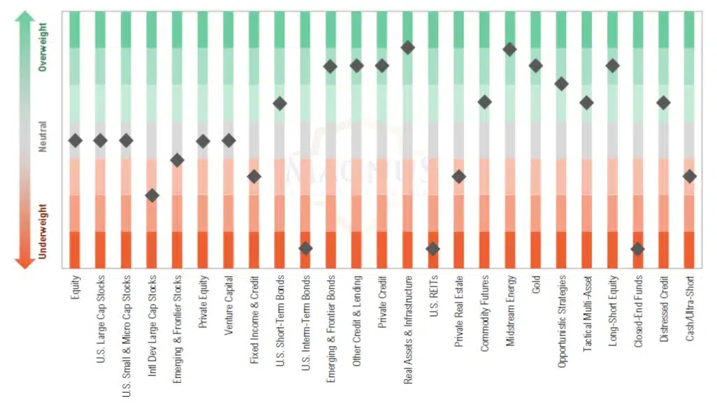 Remain diversified and tilted for upside inflation risks (value equities, lower duration bonds, overweight real assets and opportunistic)