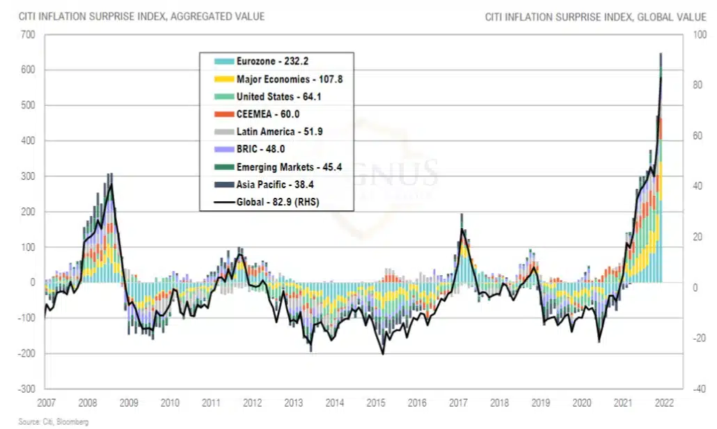 Inflation is surprising forecasts on a global scale, a first since 2009
