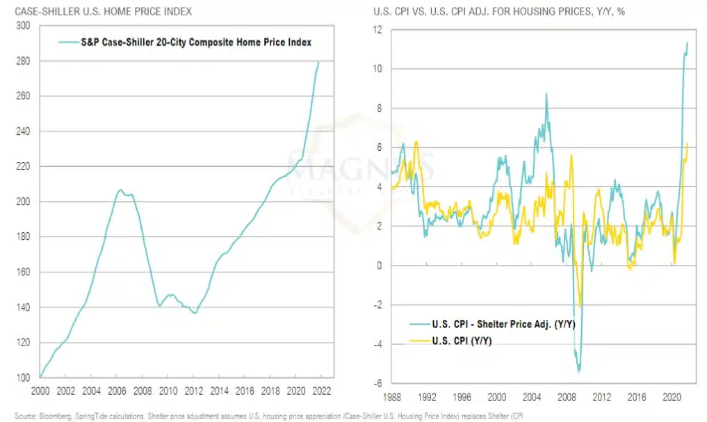 Adjusted for U.S. housing price appreciation, inflation would be significantly higher due to the lag in reporting of shelter in CPI