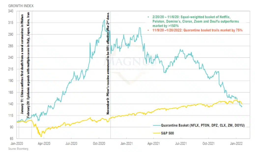 Quarantine stock basket now trails the broader U.S. stock market over 24 months