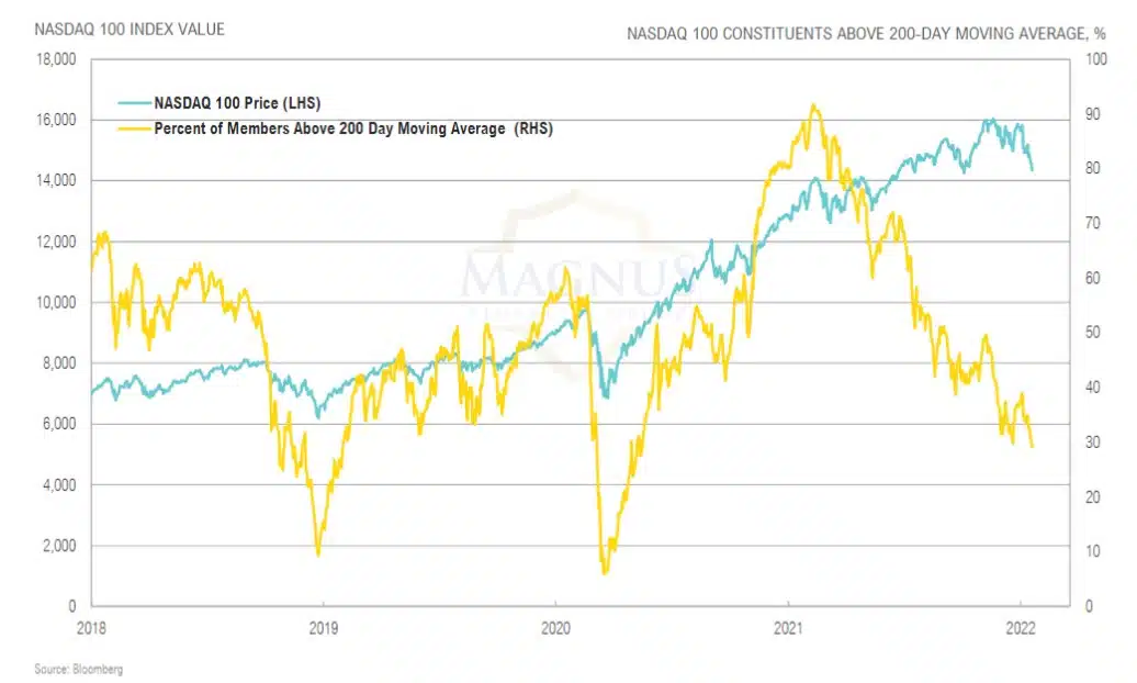 Just 30% of the NASDAQ 100 trades above their 200-day moving averages