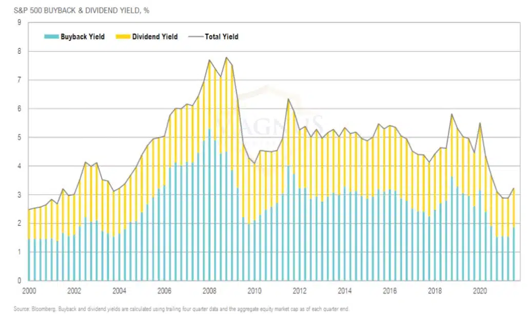Buyback and dividend yields for U.S. large cap stocks rose in the third quarter as buybacks reached a record high