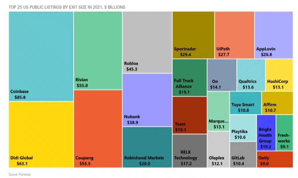 VC-backed tech unicorns were the belle of the IPO-ball in 2021…