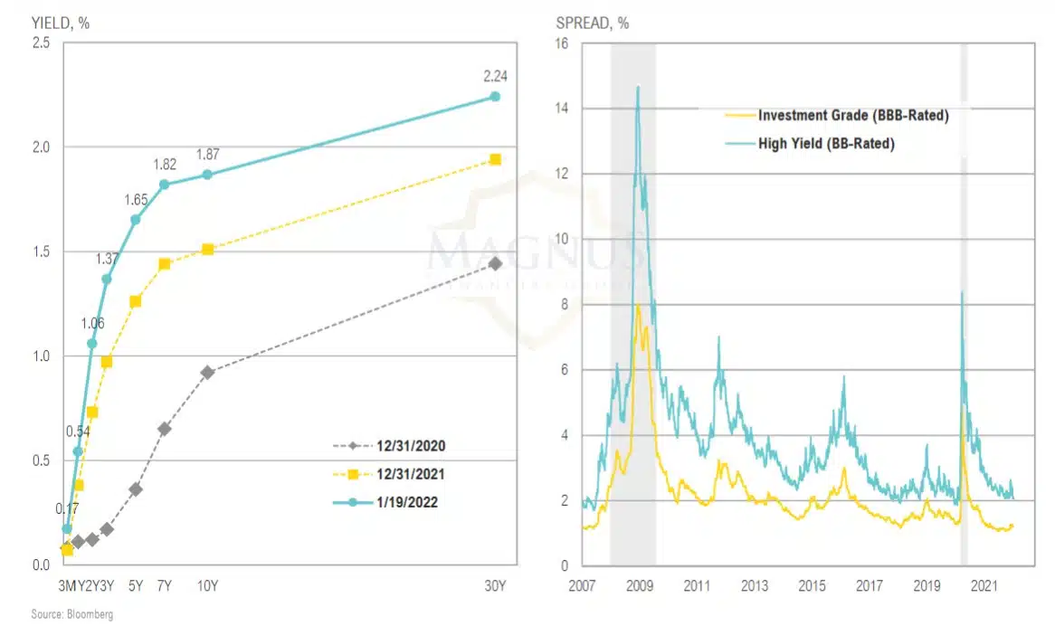 U.S. Treasury yield curve steepened significantly last year while credit spreads remain at or near historically tight levels