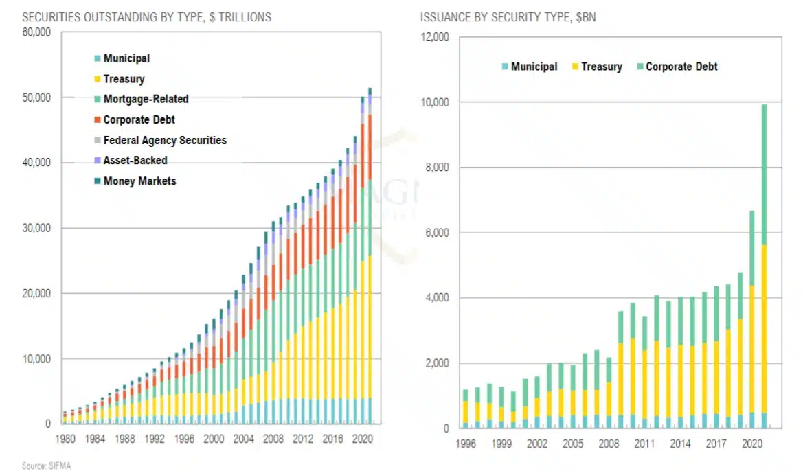 Treasuries increasingly becoming the largest segment of the now $52 trillion fixed income and credit securities market