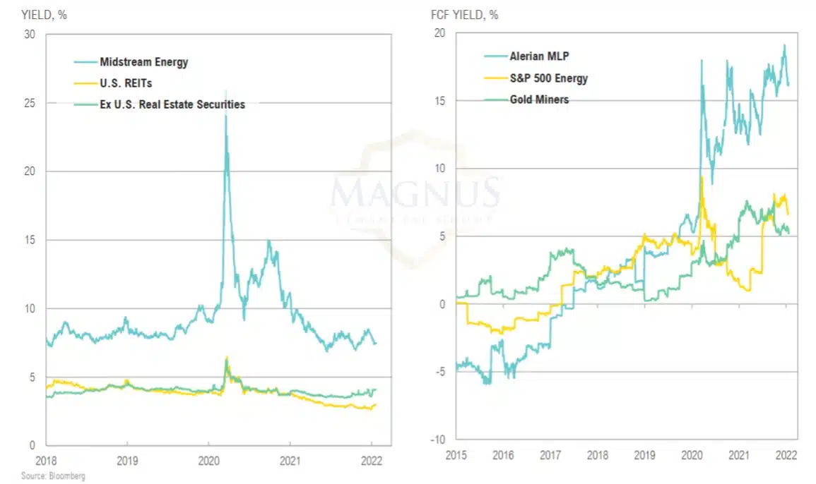Midstream yields remain substantially above REITs, free cash flow yields of real assets and infrastructure category remain attractive