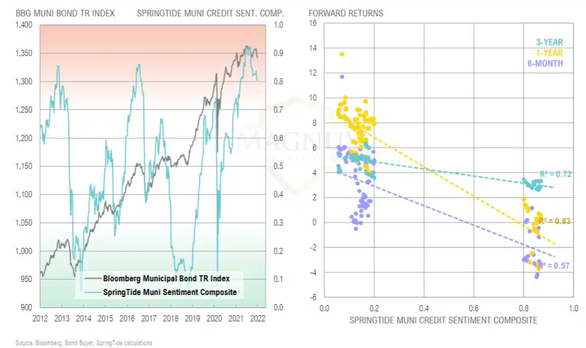 Muni credit sentiment remains elevated, historically associated with lower-than-average forward returns