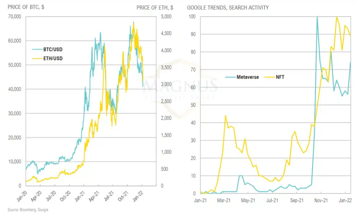 While higher profile digital asset prices have cooled off, interest remains high in underlying themes