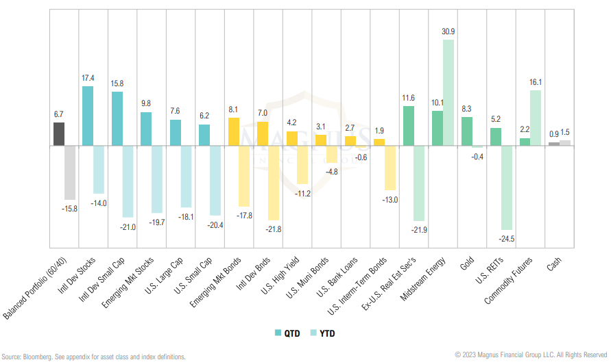 U.S. investors saw most investments rebound in the fourth quarter as both U.S. large cap stocks (+7.6%) and bonds (+1.9%) recovered together