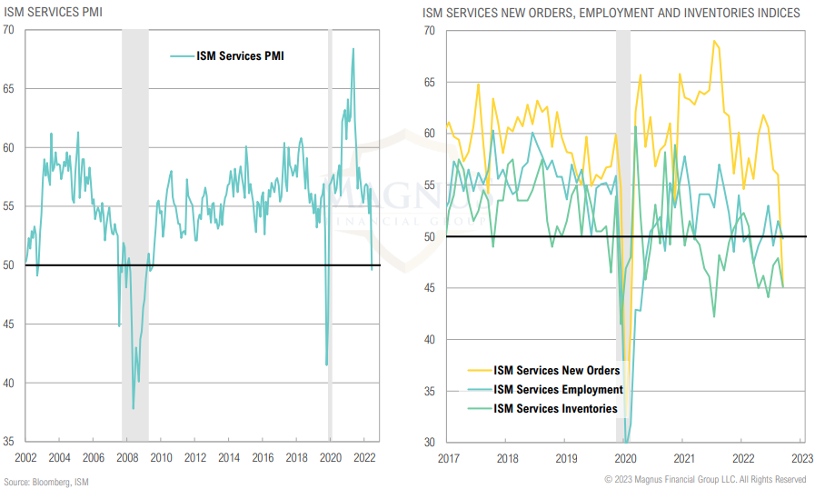 ISM Services now also in contraction but perhaps in healthier shape as consumer spending shifts from goods to services; services new orders have plummeted