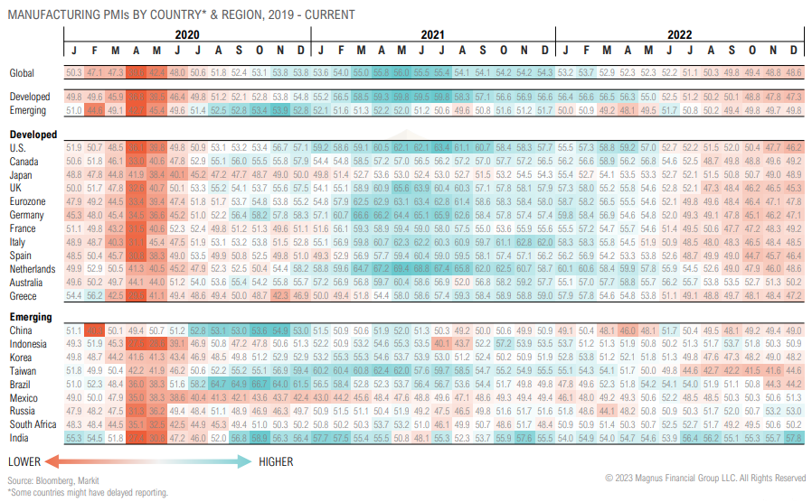 Global manufacturing activity slipped lower in December as developed market and emerging market activity continue to contract