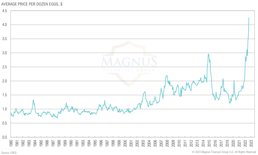 The price of a dozen eggs has more than doubled over the last year