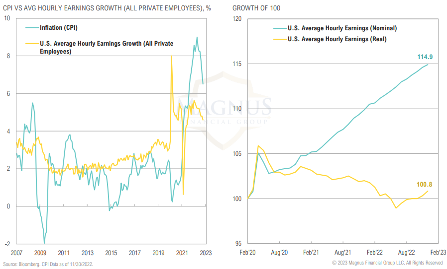Since early 2021, inflation has outpaced wage growth, eroding real household disposable income
