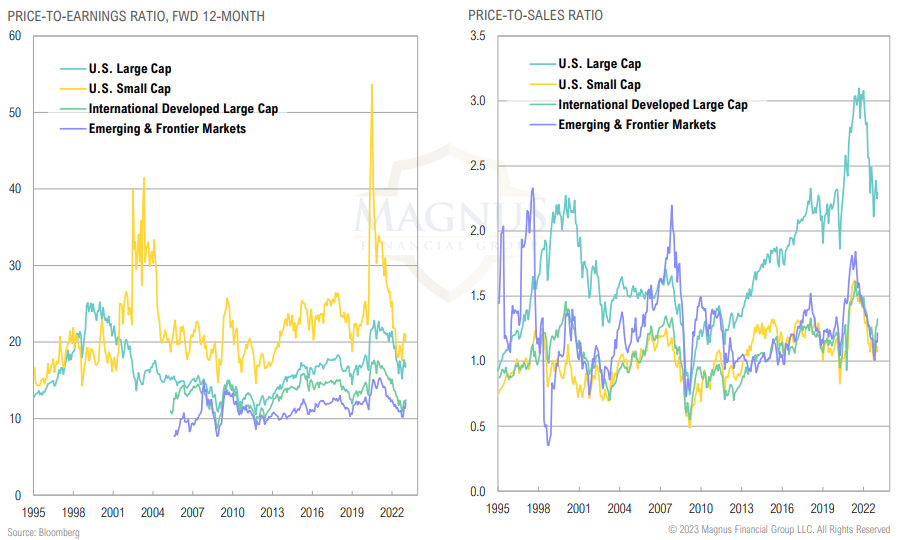 Valuations contracted over 2022 as stocks sold off globally