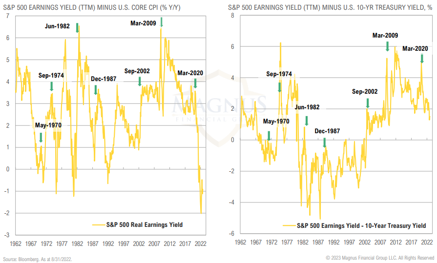 The S&P 500 real earnings yield is still decidedly negative, looks nothing like historical bear market highs (i.e., increases in earnings yield)