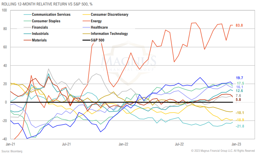 Growth sectors, including consumer discretionary, communication services and technology underperformed in 2022, with no clear indication of trend reversal