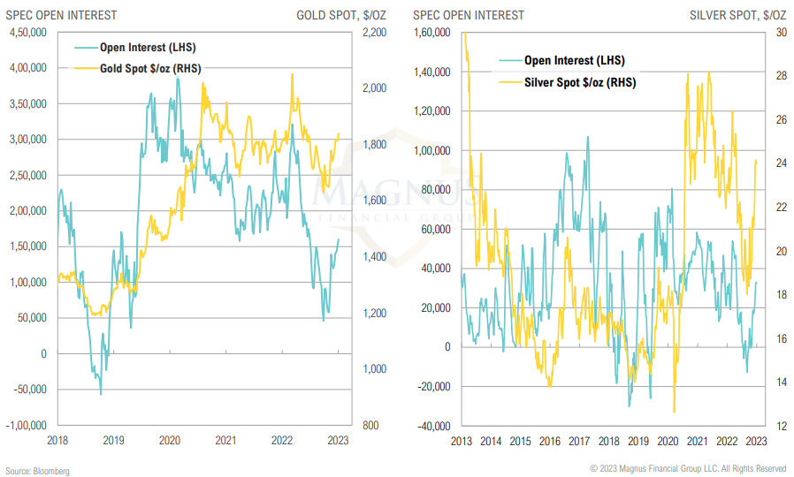 Spec positioning in gold futures increased modestly over the December, but nowhere near stretched, suggesting recent rally may have legs