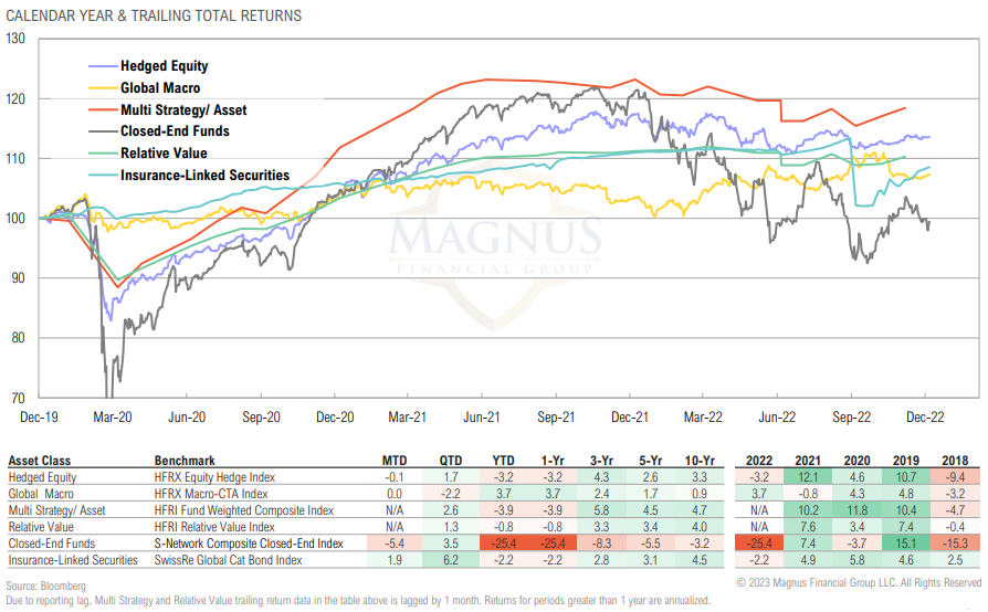 While global macro was the only opportunistic asset class with negative Q4 returns, contrarily it was also the only strategy to produce positive returns over 2022