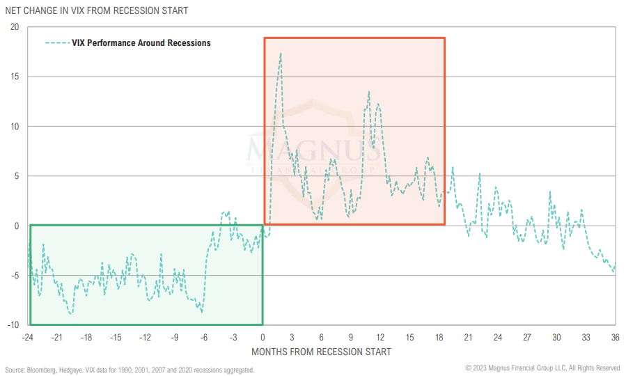 Historically, the VIX has spiked and remained elevated for extended periods after the start of a recession — but remember, volatility brings opportunity!