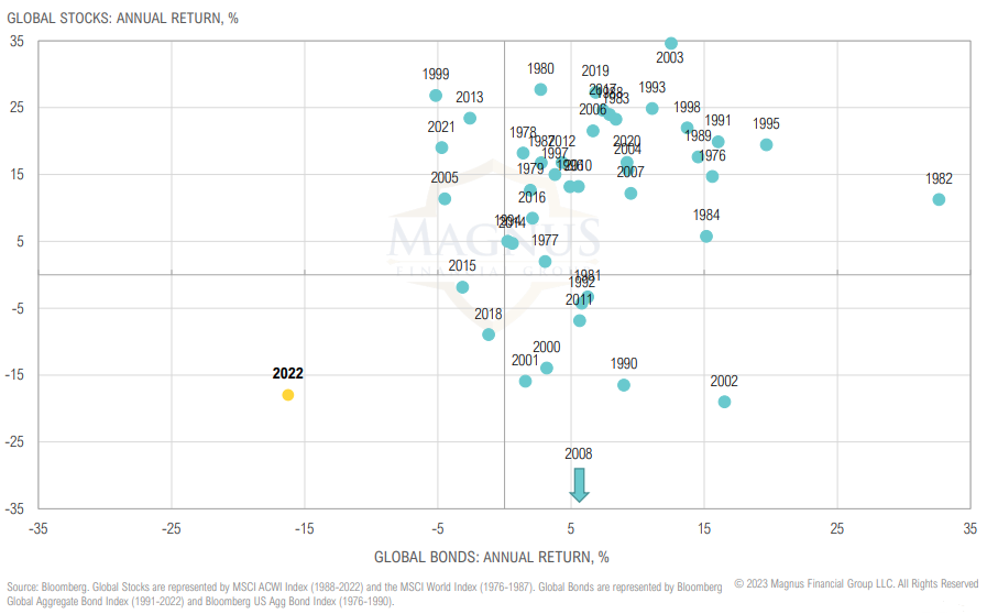 2021 was an unusual year for global stocks and bonds, 2022 even more so; again, highlighting the unusual predicament the Fed is in