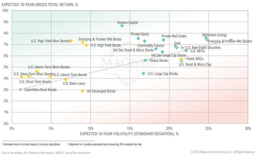 Expected 10-year returns for most assets fell marginally as yields fell and equity valuations rose throughout the quarter