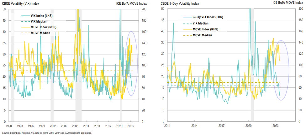 The implied bond market volatility (MOVE) isn’t showing the same level of composure as equities (VIX); it is unlikely that both markets are correct