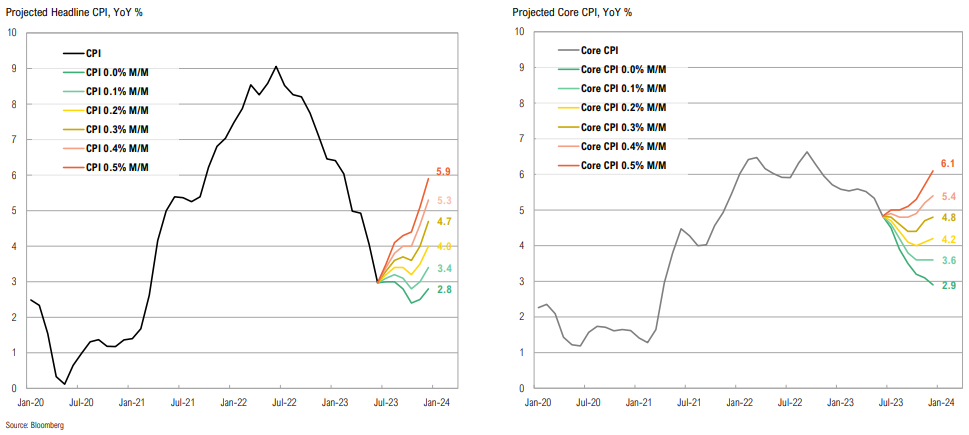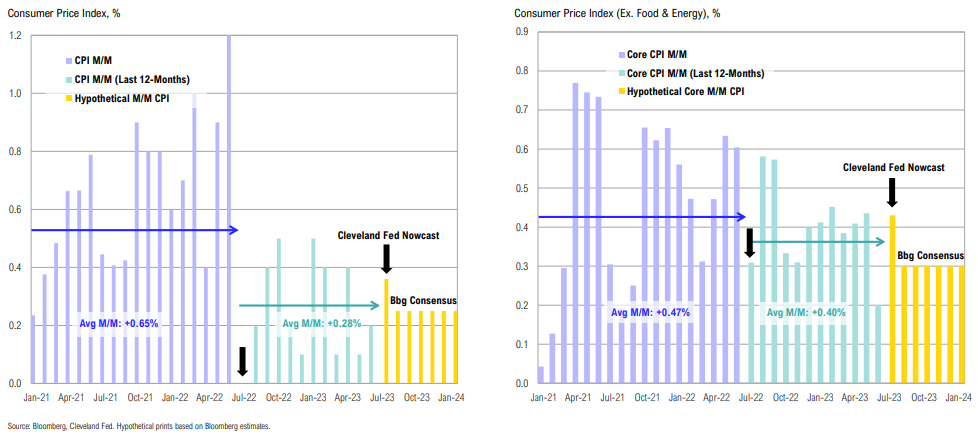 There are no more ‘easy’ CPI prints left to push inflation lower; unless average month-overmonth inflation stays below 0.25%, CPI will rise toward the end of the year due to base effects
