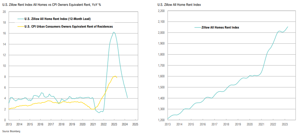 There are signs that the pace of rental price increases have moderated, which will be reflected in CPI in coming months; concerningly though, the Zillow home rent index continues to rise
