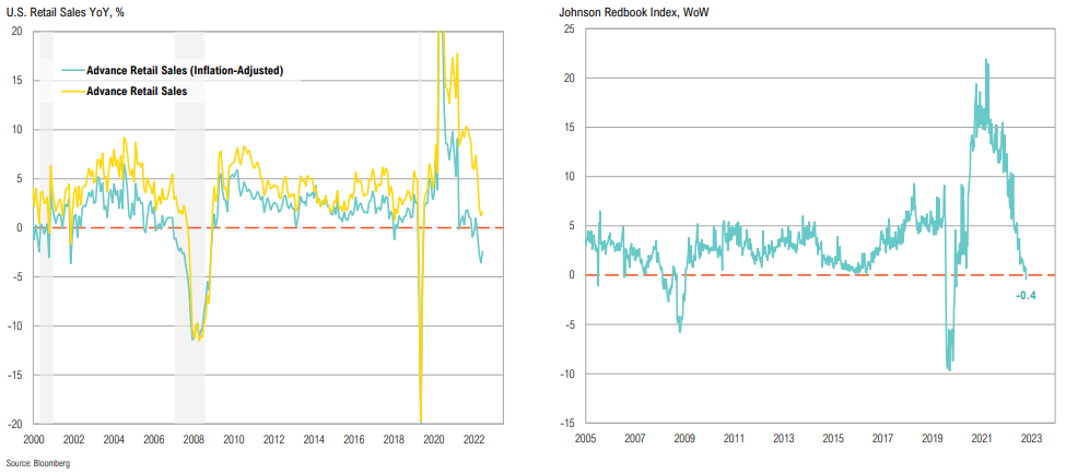 When adjusting for inflation, retail sales are still negative; in June, the Johnson Redbook Index recorded its first negative reading outside of the GFC and the pandemic
