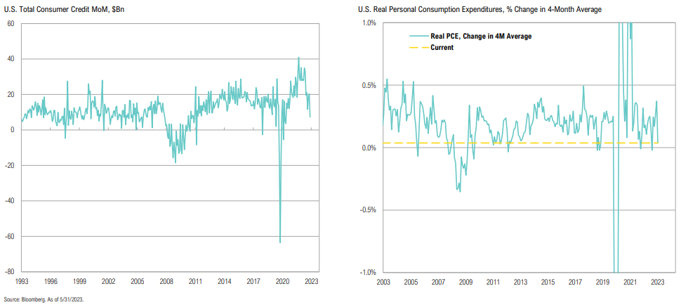 U.S. consumer borrowing increased by $7.2 bn in May, the smallest month-over-month change since 2020; spending also stalled as personal consumption pace starts to slow