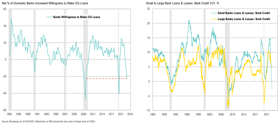Both small and large bank lending growth are slowing rapidly; higher rates could continue to drag down loan demand