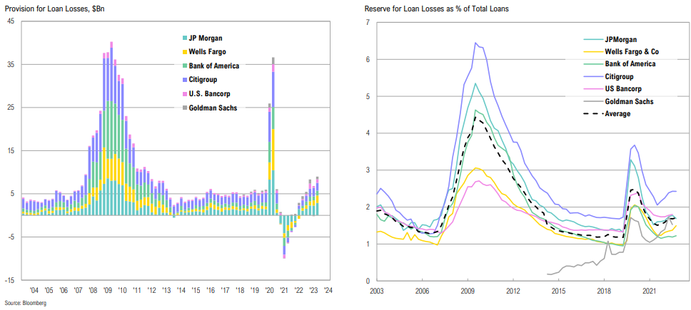 While large banks have increased their provisions for loan losses, they remain well below GFC and COVID highs