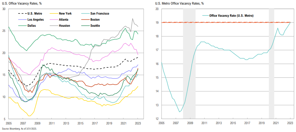 U.S. metro vacancy rates have climbed to 19%: LA has reached a record 17.3% and Boston is at 16.5%; only minimal improvements from already-high vacancy rates in Dallas, Atlanta