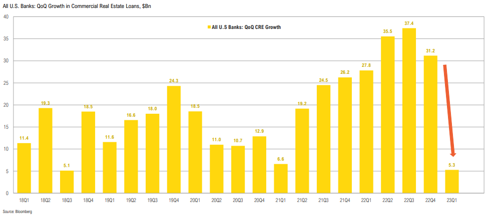 Commercial real estate loan growth stalled in early 2023 with only $5.3 billion net increase in 23Q1, the smallest quarterly increase since 2018
