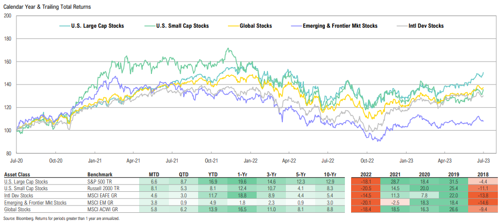 Global inflation continues to cool, but remains at elevated levels; after many months of near double-digit prints, inflation in the U.K. dropped to 7.9% in June in the first signs of easing