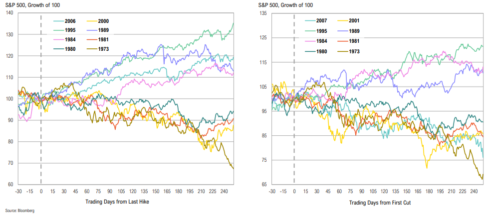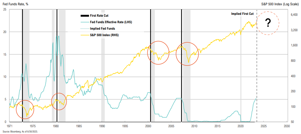 The Fed has continued to raise rates; while a pause/rate cut could be on the horizon, history shows that the Fed cutting rates doesn’t necessarily mean pain in the stock market is over