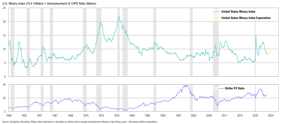 Did the Misery Index just bottom? Even though inflation is expected to stay contained, further declines in CPI may require the labor market to crack, which would drive it higher (with potential implications for equity valuations)