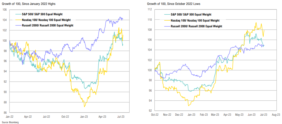 Moving to neutral for U.S./non-U.S. – Foreign stocks have been a value trap for many years, while valuations remain modestly cheaper than the U.S., they are far from the actionable extreme seen at the 2022 lows. The same concept applies for U.S. small cap, where 40% of the Russell 2000 constituents have negative EPS.