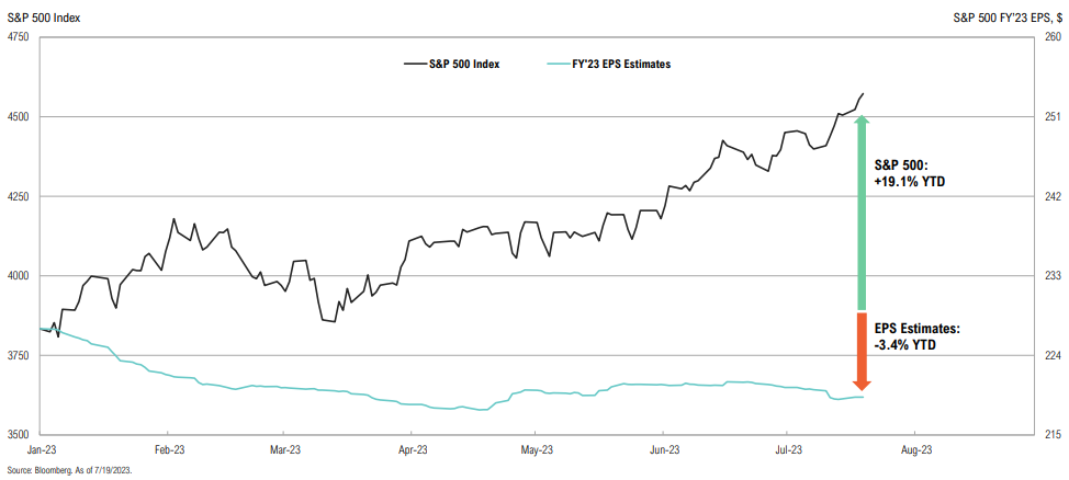 Sales growth is expected to slow in 2H23 before increasing to a modest +5% YoY; but earnings growth is expected to jump by >10% YoY… What’s going to drive margins?