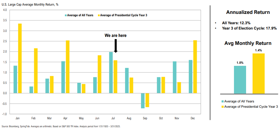 The historic outperformance of year 3 of the election cycle is mostly prominent at the start of the year—we are past that point now