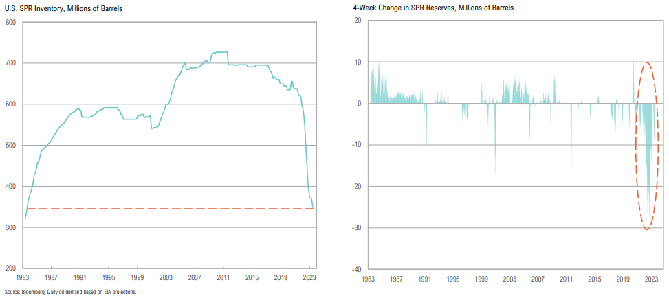 More than 275 mn barrels have been released from the SPR over the past two years and SPR levels are now at the lowest since August 1983; the DoE announced a 6 mn barrel replenishment in August