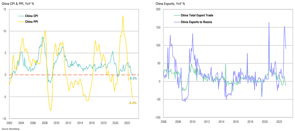 China’s recovery is faltering: CPI and PPI near deflation; exports dropped by 12.4% YoY in June to the lowest levels since 2016—exports to Russia remain elevated, but have been slowing