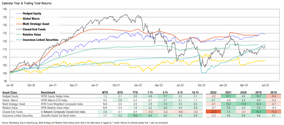 Insurance-linked securities were again the top-performing opportunistic asset class over the quarter, up 5.2%, while closed-end funds continued to stall, up just 0.1%