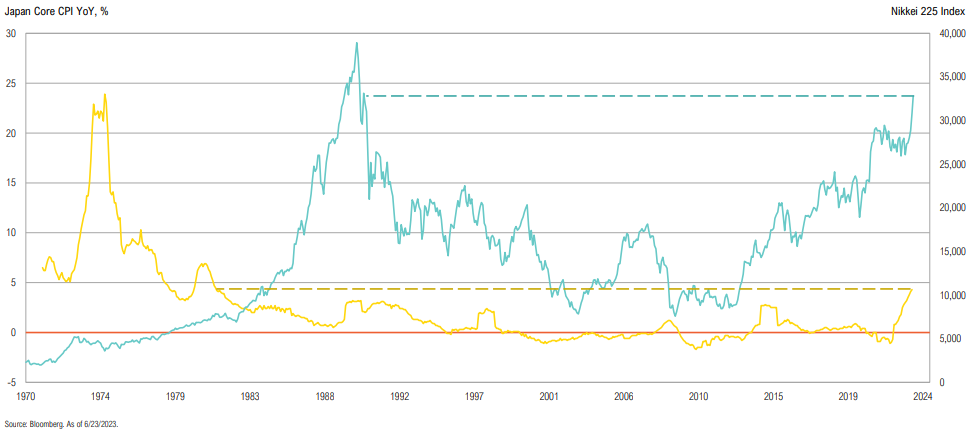 Japan’s core CPI is at the highest level since 1981 and the Nikkei Index is up 25% YTD, near levels last seen in 1990; BoJ Governor Ueda adamantly sticks to policy