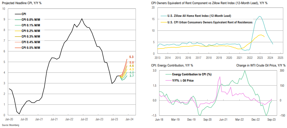 Inflation encore: we may see further increases in headline CPI toward the end of 2023, likely even breaching 4.0% again; housing disinflation should start to flow through even as energy switches sides