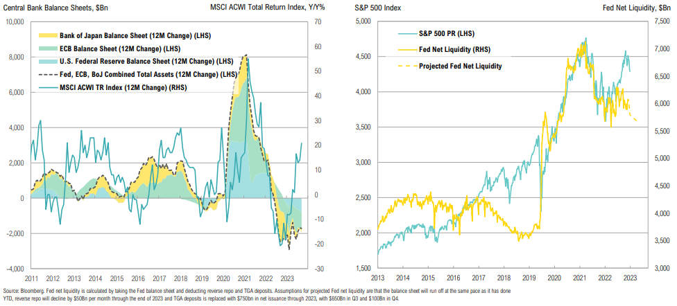 There is an unusual divergence between central bank balance sheets and global stock performance; if the Fed continues with QT, liquidity should dry up throughout the rest of the year