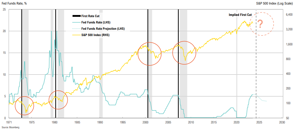 While a pause/rate cut could be on the horizon, history shows that the Fed cutting rates doesn’t stop the pain from prior hikes and their ‘long and variable’ lags