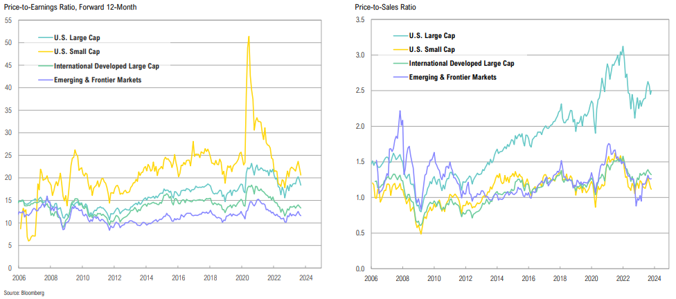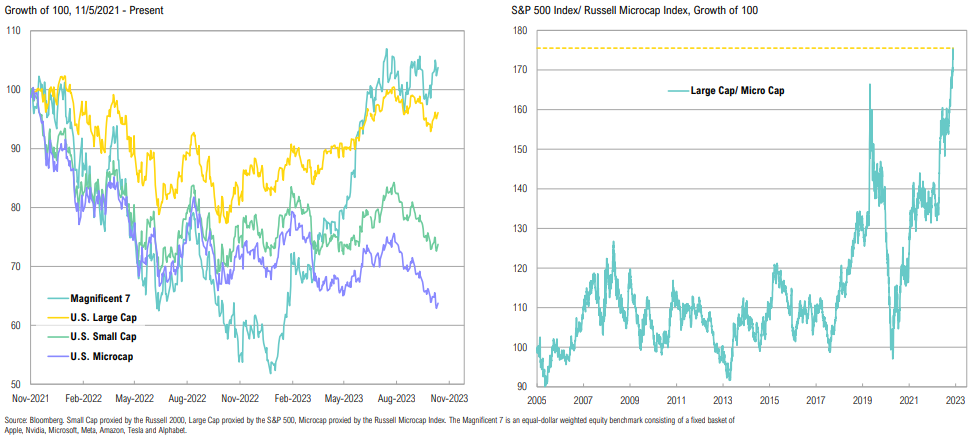 There is a historic performance divergence between U.S. large cap and small cap stocks since Nov 5, 2021 (small cap peak); U.S. large caps have a lot going for them