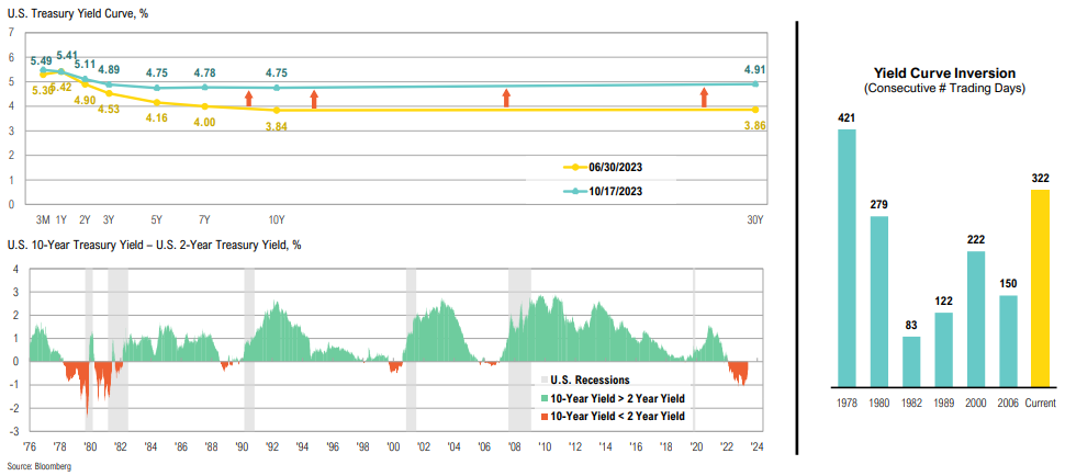 ‘Higher-for-longer’ pushed Treasury yields to levels last seen in 2007; we are in the midst of the worst Treasury bear market of all time, with bonds delivering the worst three-year returns in history