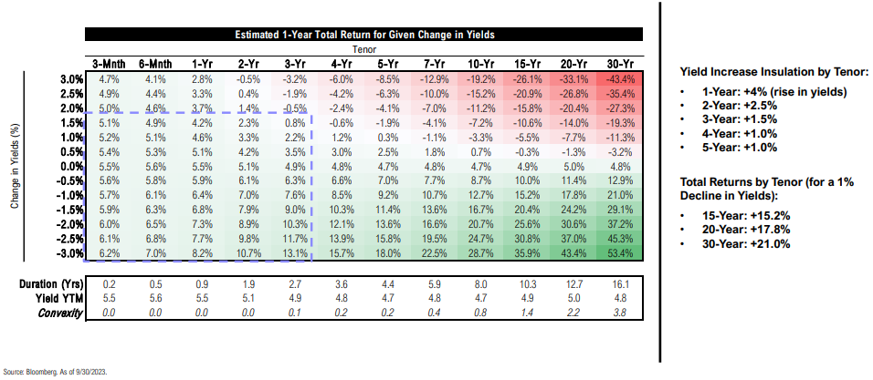 There’s always opportunity: the 3–4-year part of yield curve has an attractive risk-reward profile—yields could move up 1.5% in the next year and total returns would still be positive